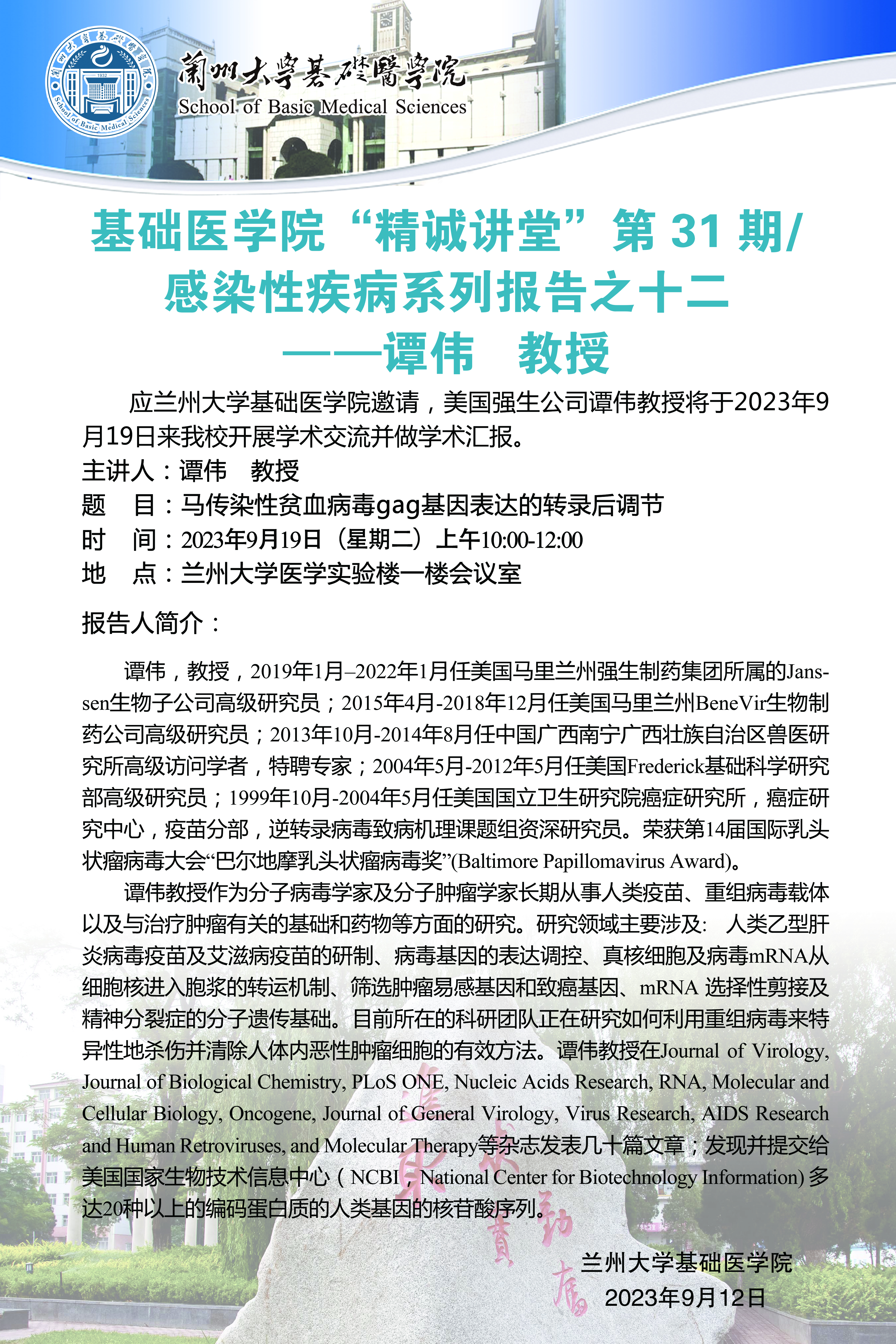 学术不端和师德师风问题举报电话:0931-8915092 举报邮箱:jcyxy@lzu.edu.cn